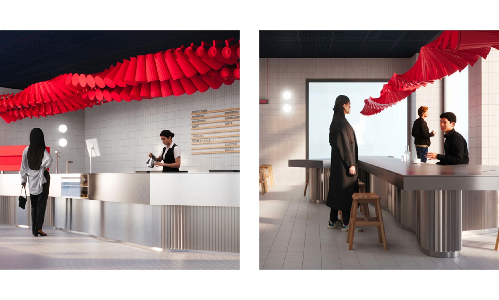 이탈리아의 디자인 라이프스타일 브랜드, 알레시는 올해 도산공원에 ‘알레시 에스프레소’를 오픈했어요. 트렌디한 공간, 알레시의 제품을 활용한 위트 있는 디자인은 브랜드 정체성을 잘 드러냅니다. 알레시의 붉은 주전자 ‘플리세’ 수십 개가 천장에 매달려 있는 모습은 고객에게 독특한 인상을 남겨요. 알레시의 제품 디자인은 디저트에도 적용되었는데요. 풀치나 모카포트를 꼭 닮은 디저트를 선보이기도 했습니다. 알레시의 카페는 이탈리아 에스프레소와 모카포트, 알레시 제품 디자인의 아이덴티티를 보여줄 수 있는 공간이에요.